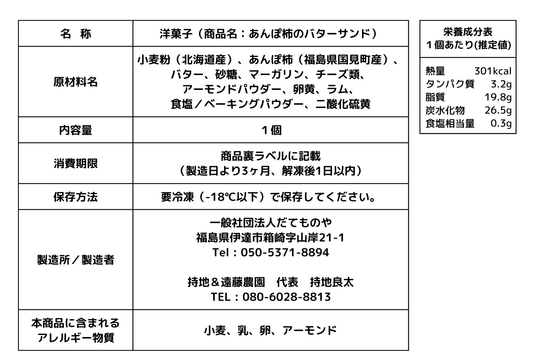 「あんぽ柿バターサンド」は、地域の特産品である「あんぽ柿」の濃厚な甘さとまろやかなバターが絶妙に調和した、持地&遠藤農園自慢の逸品です。